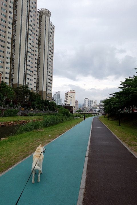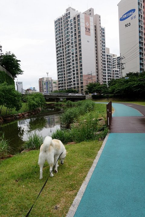 여천천 산책로 도착.. 킁킁 거려요