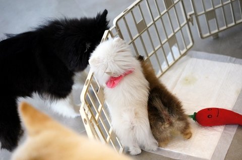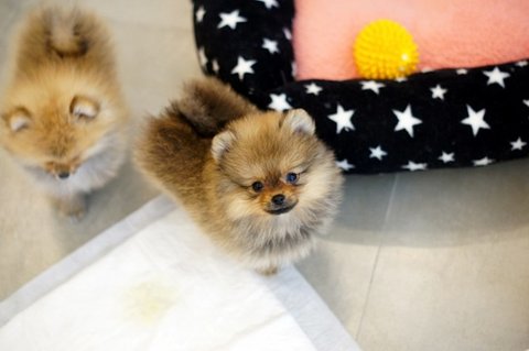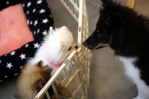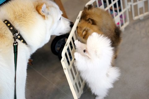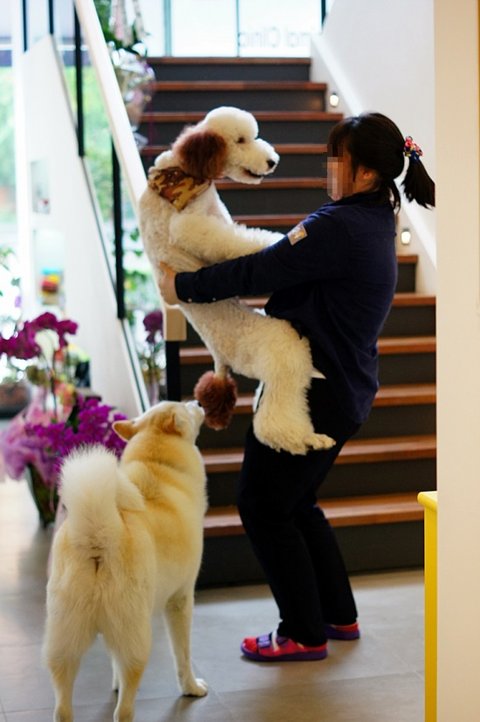 동물병원에 놀러왔어요..ㅎㅎ 포메 강아지들과 인사하고 있어요