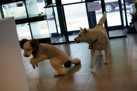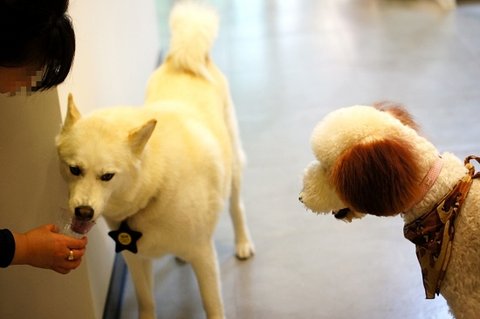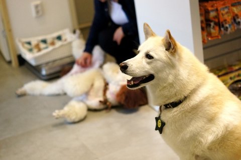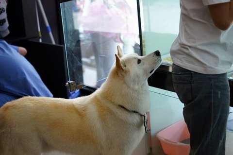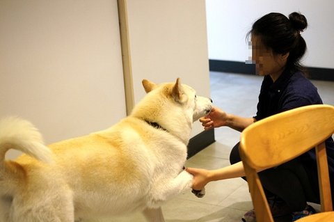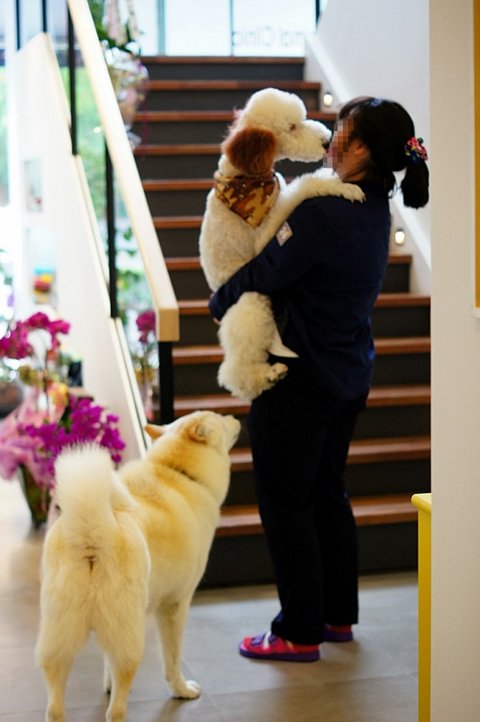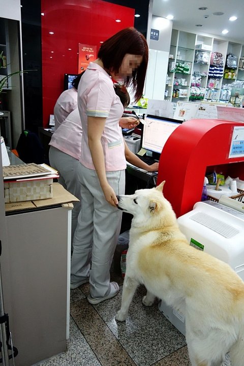 심바는 병원에 손님들어오시면.. 다가가서 인사도 하고 그래요..ㅋㅋ 병원사는 개 같아요.ㅋㅋ