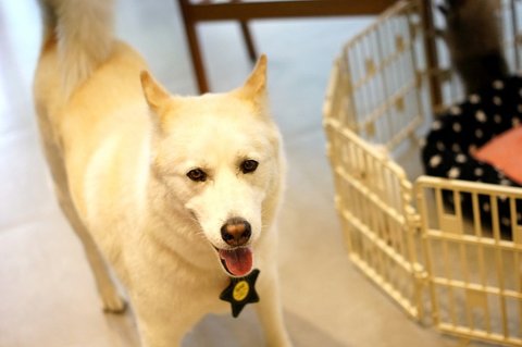 예전에 만났던 백구 강아지 만났어요.