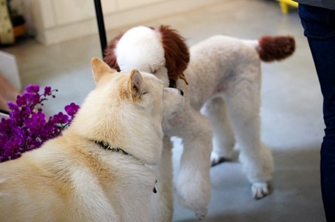 비숑프리제가 심바보고 좋다고 다가왔어요..ㅋㅋ