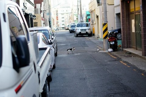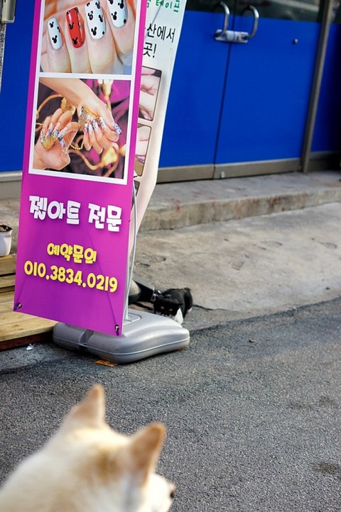 ㅋㅋ 페인트 가게 앞에 고양이 들이 여유롭게 걸어가고 있었네요.