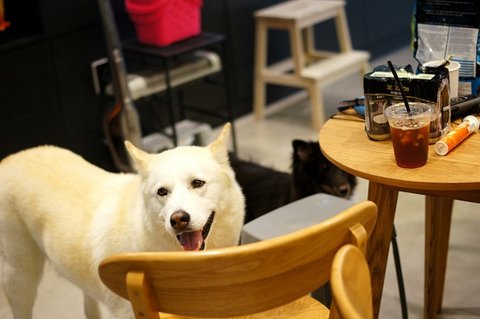 카페 개 해라..ㅋㅋㅋ어딜가도 거기서 기르는 개처럼 보이는 심바.