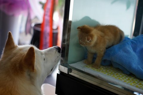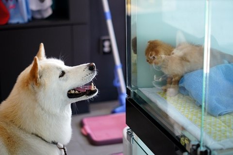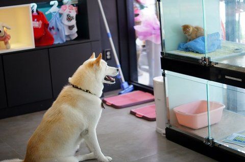 고양이도 심바를 유심히 보고 있네요.ㅎㅎ
