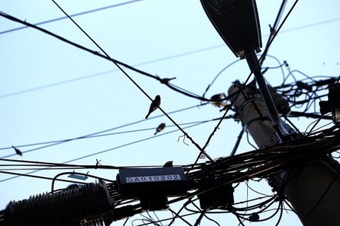 전깃줄에 앉아있는 참새들