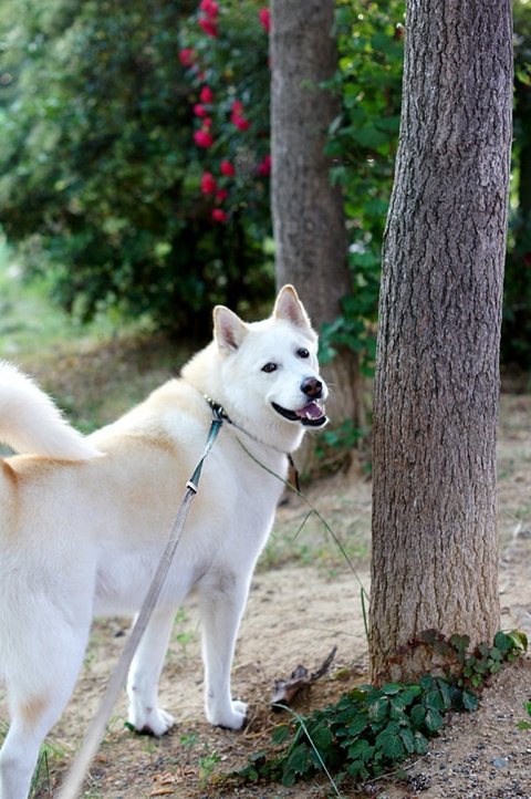 멀찍이서 혼자 조용히 놀고 있던..진돗개 재구가 있었어요. 아직 강아지.