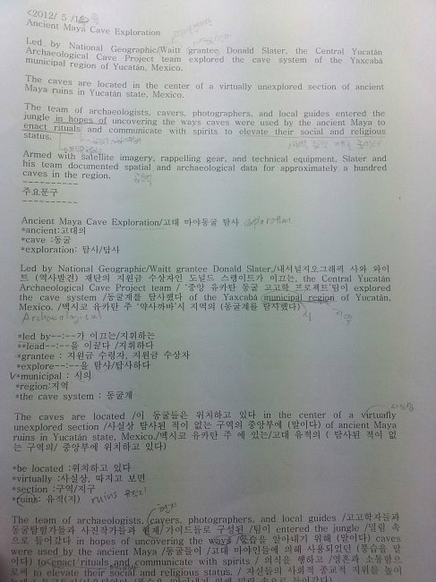 10개 영자신문 기사를, 30분 단위로, 총 50개를 공부했어요.
