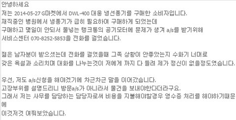 간단히 요약하자면, 대웅에서 냉풍기를 구매하였는데 (모델명:DWL-400)
