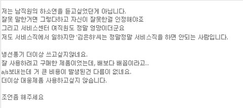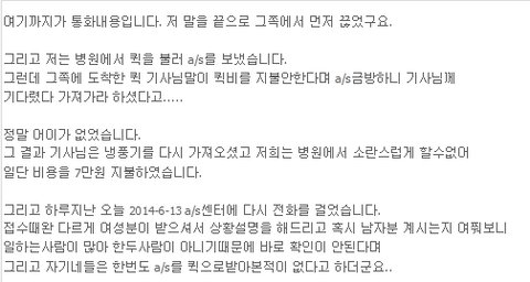 방문a/s는 안된다며 물건을 보내라해서 보냈는데 그것에대한 비용 지불문제로 글을 남깁니다.