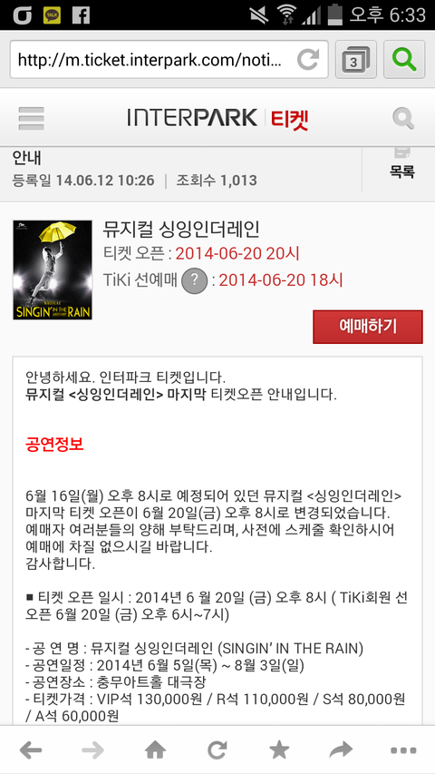 백현이 뮤지컬 3차 티켓팅 날짜 바뀜!!!
