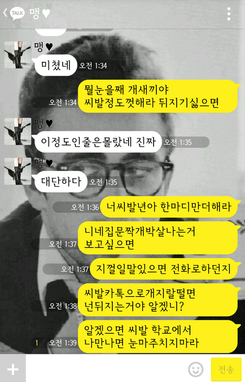 자세한상황은 모르겠다만 남자무섭네 돌변해서 욕지껄이는꼬라지가.. 여자가처음에이모티콘써대며 깐족댄거 짜증날만하긴한데.. 남자가 보기드문 미친놈인듯..; 여자도 마지막에 확인안하는거보면 정나미떨어져서 별말없이 차단한듯