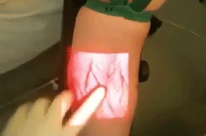 읭ㅋㅋㅋ 이거 지금도 쓰는데.. 아직 대중화는 안됐지만 대학병원급엔 꽤 많아요! 베인뷰어라고 해서 피부에 적외선을 쏘면 혈관이 보이는거에요! 혈관 찾기 어려운 소아과병동은 많이 쓴답니다.ㅎ.ㅎ