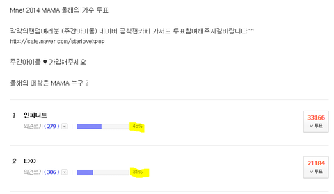 니네 2014 mama 투표는 안하냐 지금 개발림