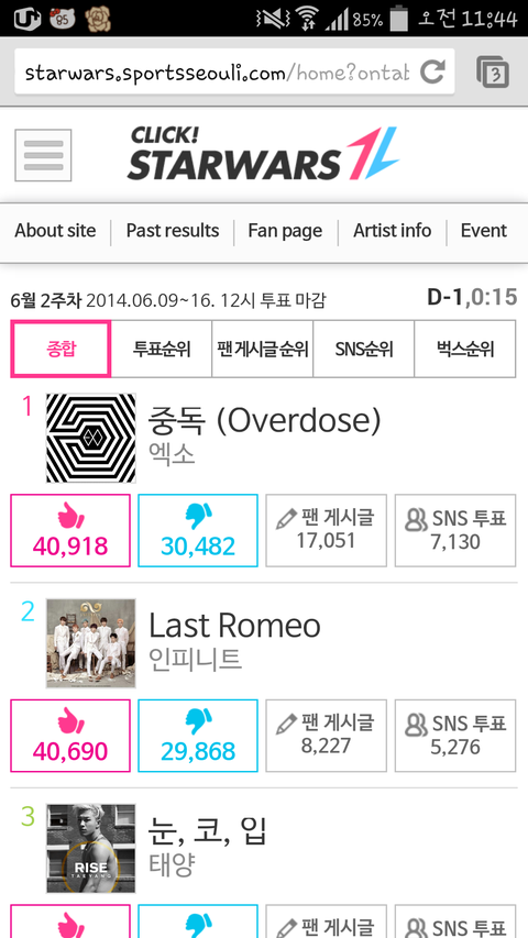 누가엑소좋아요만누르고있나봐 한번할때 두표씩할수있으니까 엓좋 ㅇㅍㄴㅌ싫 눌러 데이터껏다켯다하면계속할수있어 힘내자 싫어요수3개에 좋아요1개차감이야