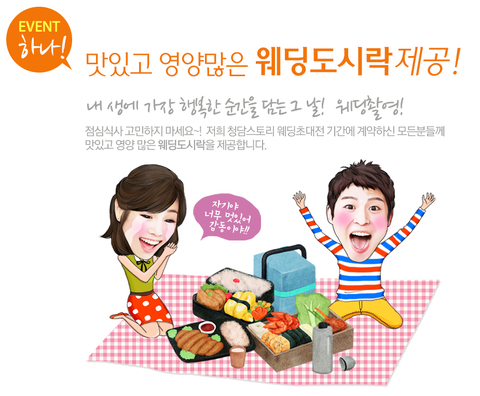 청담스토리 Day Tour 일자에 계약하신 모든분들께 웨딩촬영일에 드실수 있는 맛좋고 영양많은 웨딩도시락까지 제공한다고 해요~ 기존 전주웨딩스튜디오에서는 식사를 주문하거나 도시락을 싸야해서 적지 않은 부담을 느낄수 밖에 없는데 청담스토리에서는 웨딩도시락을 제공하니!! 우와~