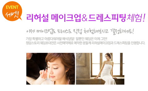 마지막!! 대게는 메이크업이라든가 드레스를 보려면 피팅비, 메이크업비용을 지불하거나 계약을 해야만 보여주잖아요?! 근데 전주웨딩스튜디오 청담스토리는 신부의 마음을 어찌 그리 잘 아는지~ 계약전 리허설메이크업, 드레스피팅의 기회를 제공한다고 해요!! 대박!! 진짜 완전 대박!!