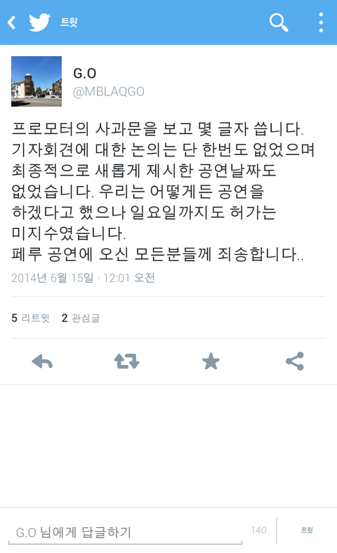 프로모터측은 2015년 1월쯤에 다시 공연예상하고있다고하고