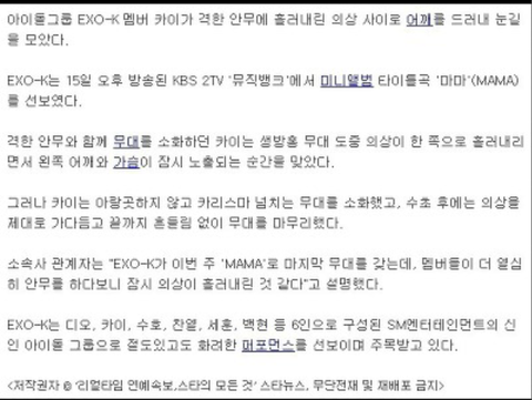우리 종인이는 노출에 갱장히 민감한데ㅋㅋㅋㅋㅋㅋㅋ 생방이라 엄청 당황했을듯 종인아 그런데...핫바디를 꽁꽁 싸매면ㅜㅜ 그건 상도덕에 어긋나는거란 말이야ㅜㅜ 그치만 자꾸 감추려고 애쓰는 종인이가 좋은건 왜죠ㅋㅋ그냥 너라서 다 좋은거같아ㅋㅋㅋㅋㅋㅋ