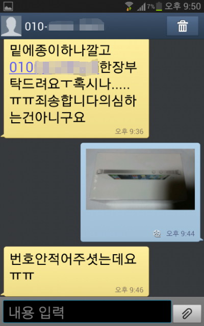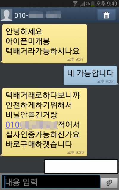 자기번호 적은 사진 받아서 자기가 아이폰 판매자인거처럼 속여 다른사람에게 사기치려는놈