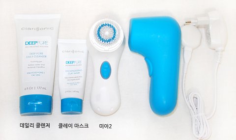 왼쪽부터, 딥포어 데일리 클렌저/클레이 마스크/미아2/휴대용 케이스/충전기
