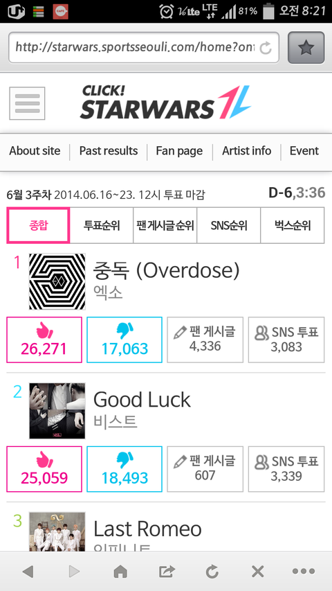 데이터 꼈다켜면 무제한으로 투표 가능해 반대도 가능 엑소 좋아요 누르면서 ㅂㅅㅌ 반대도 눌러!!