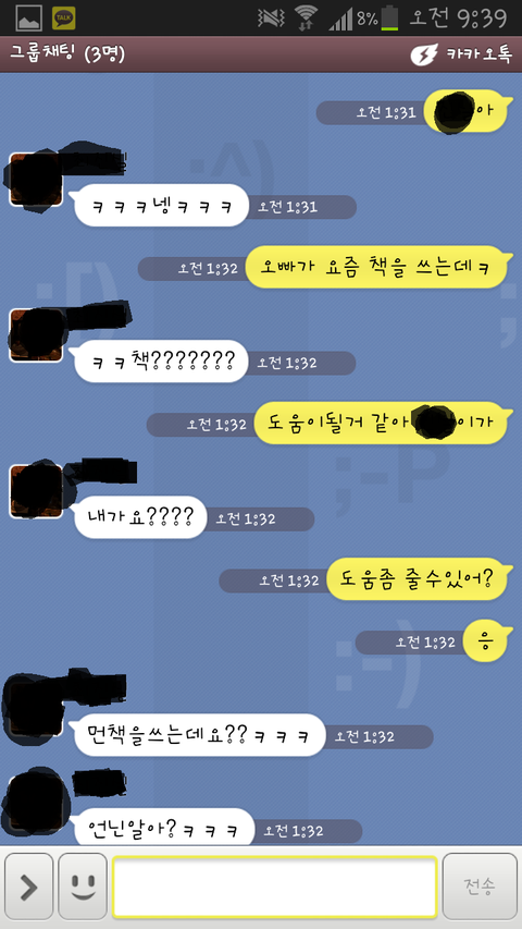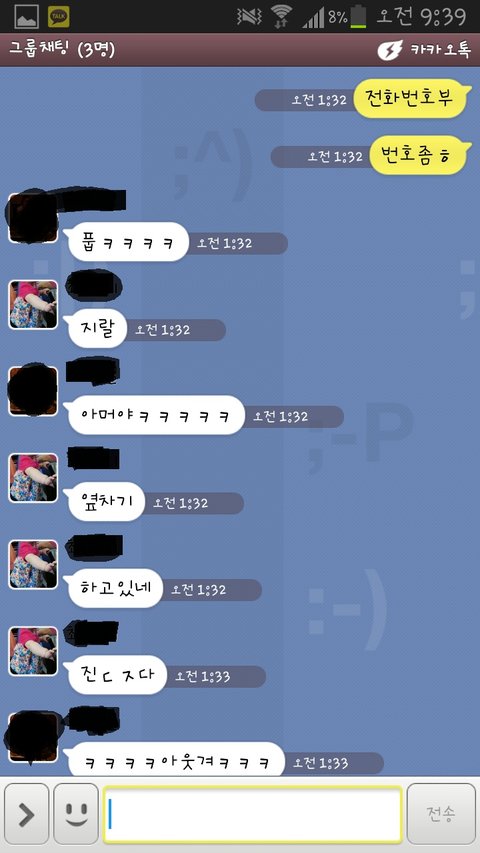 자기 아는 여동생을 소개 시켜준다고 그룹 체팅으로 그 얘를 초대 하였다.
