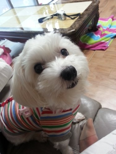 특징 : 말티즈라고 하긴 하던데 머리와 코와 귀가 매우 큼. 근데 다리는 짧다.