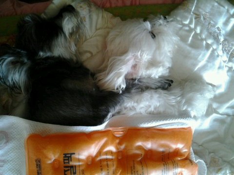 요거는 우리 첫째 루피랑 토토랑 사이좋게 팔베게하고 자는거 따뜻하라고 엄마가 찜질팩 올려주셨어요 ㅋㅋㅋㅋ(겨울에)