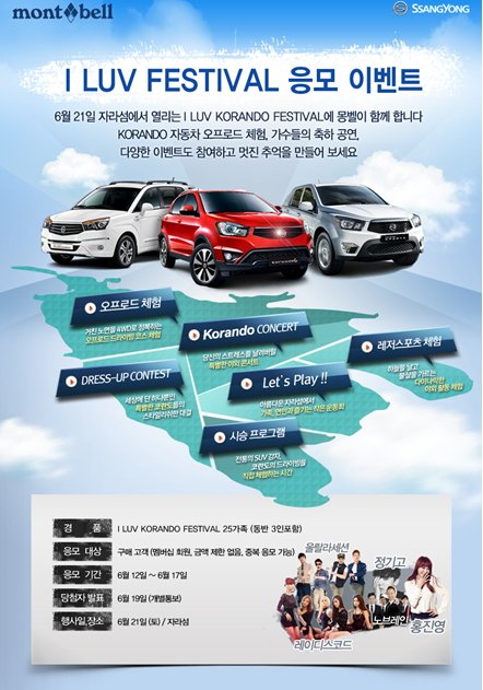 아웃도어의 명가라 할 수 있는 몽벨과 쌍용이 합세해 캠핑 이벤트를 진행한다네요.