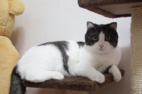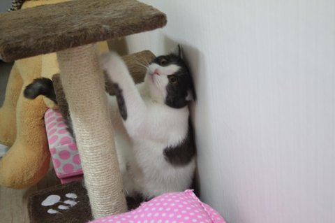 요가를 끝내고 캣타워에서 휴식을 취하고 있어요.