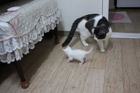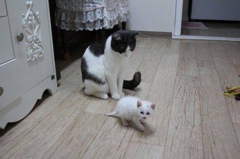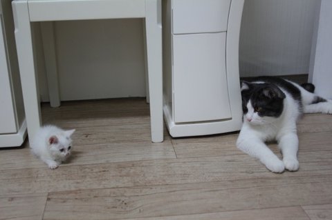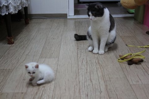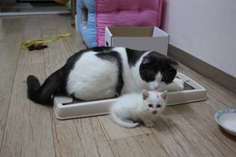호기심 많은 아깽이와 낯설어 하는 유청이에요.