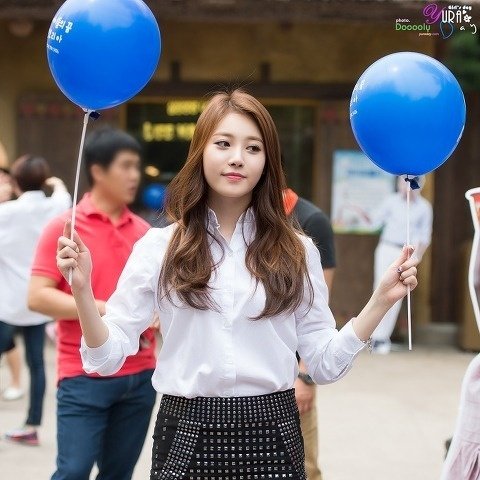 놀이공원에서 튀는 유라의 외모