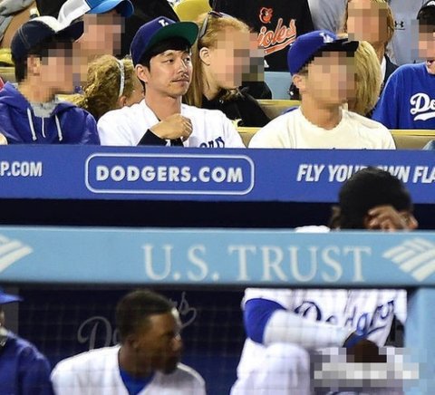 미국 촬영중 류현진경기 응원하러간 공유ㅋㅋ