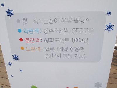 눈송이 우유빙수 이벤트를 하고 있더라구요 ㅎㅎ