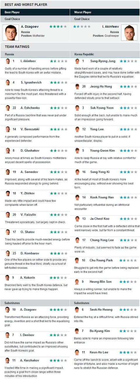 (6점) 기성용, 김영권, 홍정호 / 이근호
