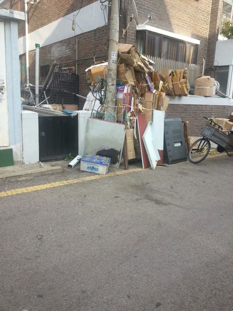 저녁 때 보니 이렇게 폐휴지 등 고물이 잔뜩 쌓여 있네요.