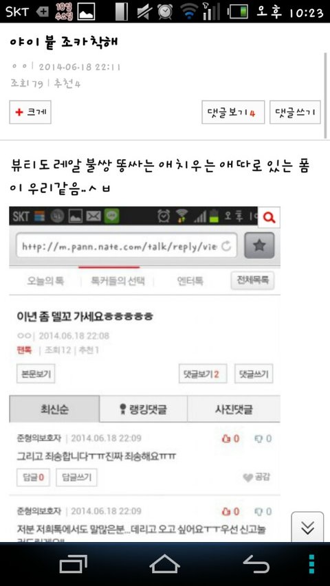 어떤 븉이 전체로 돌리다가 우리 칭찬글 봤대요