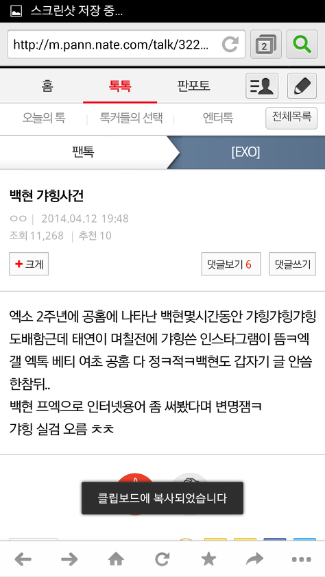 백현 팬카페에 태연유행어쓰고 팬들농락잼