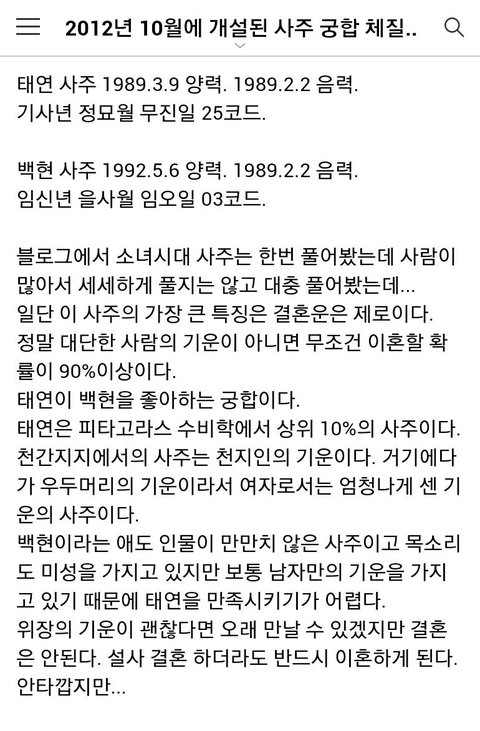 백현이랑 태연 사주 궁합이래 ㅈㅍㅈ
