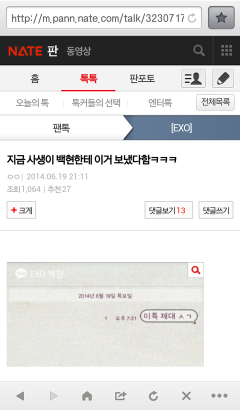 사생이 백현이한테 보낸 카톡이랰ㅋㅋㅋ