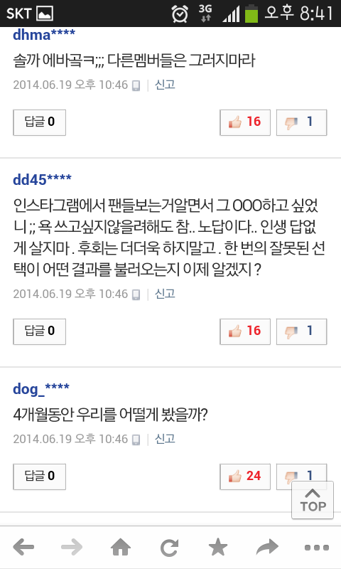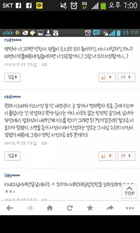 태연이 탱큥배릐망치 할때부터 확신했었다. 근데 처음엔 호의적인반응이었는데 둘이사귀는게화나는게아니라 아직 한창리즈시절일때고 아무리떳다고해도 35살전까지 연애안하겠다는말때문에 더화나 35살전에사귈수도있는건데 팬들이 좋다고 반응할때 크리스 탈퇴할때도 인스타로 둘이 좋다고꽁냥질한거아니야 난 그게 더화나 우연의 일치가그렇게될수있을까? 그리고 둘이 순수하게 감정가지고사귀는거알겠는데 아무리정치적인거덮으려고그런일이라고쉴드쳐도도 둘이 인스타에서 꽁냥댄건뭐야 수호가 상처받지 않았으면좋겠다 남는건 우리실만뿐이네 좀 씁쓸하다진짜