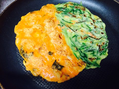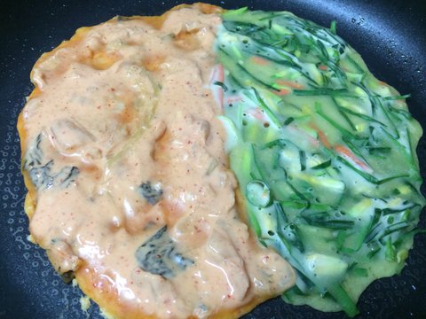 와우 요즘 피자도 반반으로 나오는데 부침개는 생각도 못했네요 !! 신박함!
