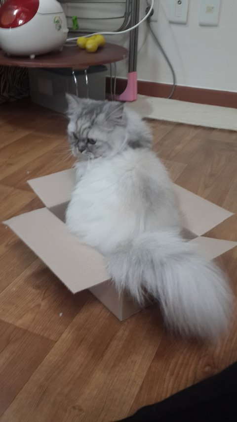 택배와서 박스를 그냥 나뒀더니.. 거이에 들어가서는.. 저러고 있네요~