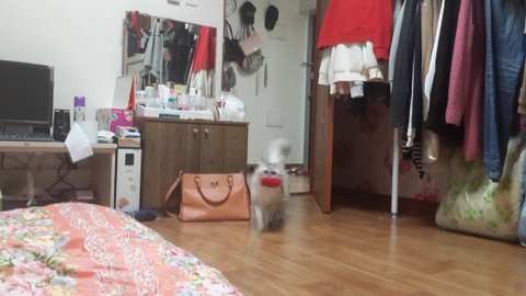 처음으로 미용을 하고 털이 좀 자란때였는데... 놀다말고 저러고 저의 다리를 붙들고....크크크![]()
