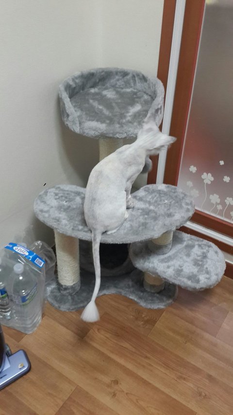 캣타워를 새로 사줬더니... 신기한지 자꾸 올라가서 구경을 하더라구용~