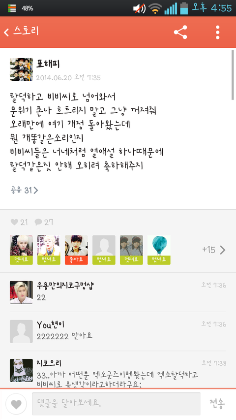 수정)댓글에톡디적고가면 저스토리보내중