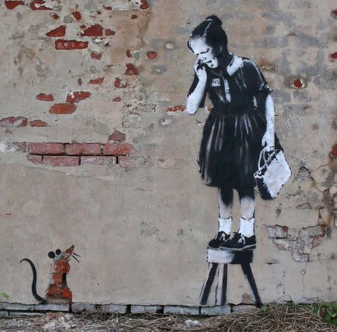 뱅크시는 영국 작가로 단순히 벽화만 그리는것이 아니라 전쟁, 폭력을 비판하는