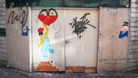 처음 뱅크시가 그림을 그릴때는 경찰들이 잡기위해 노력했다고 하는데요~