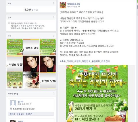 발견했답니다 우리나라가 축구 경기를 하는 23일과 27일에 개성있는 댓글을 달면 진짜