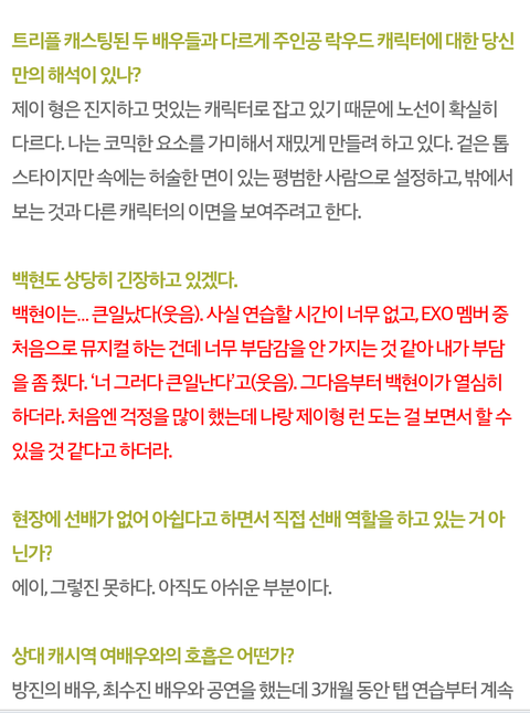 규현 싱잉인더레인 인터뷰 혐이 언급ㅋㅋㅋ